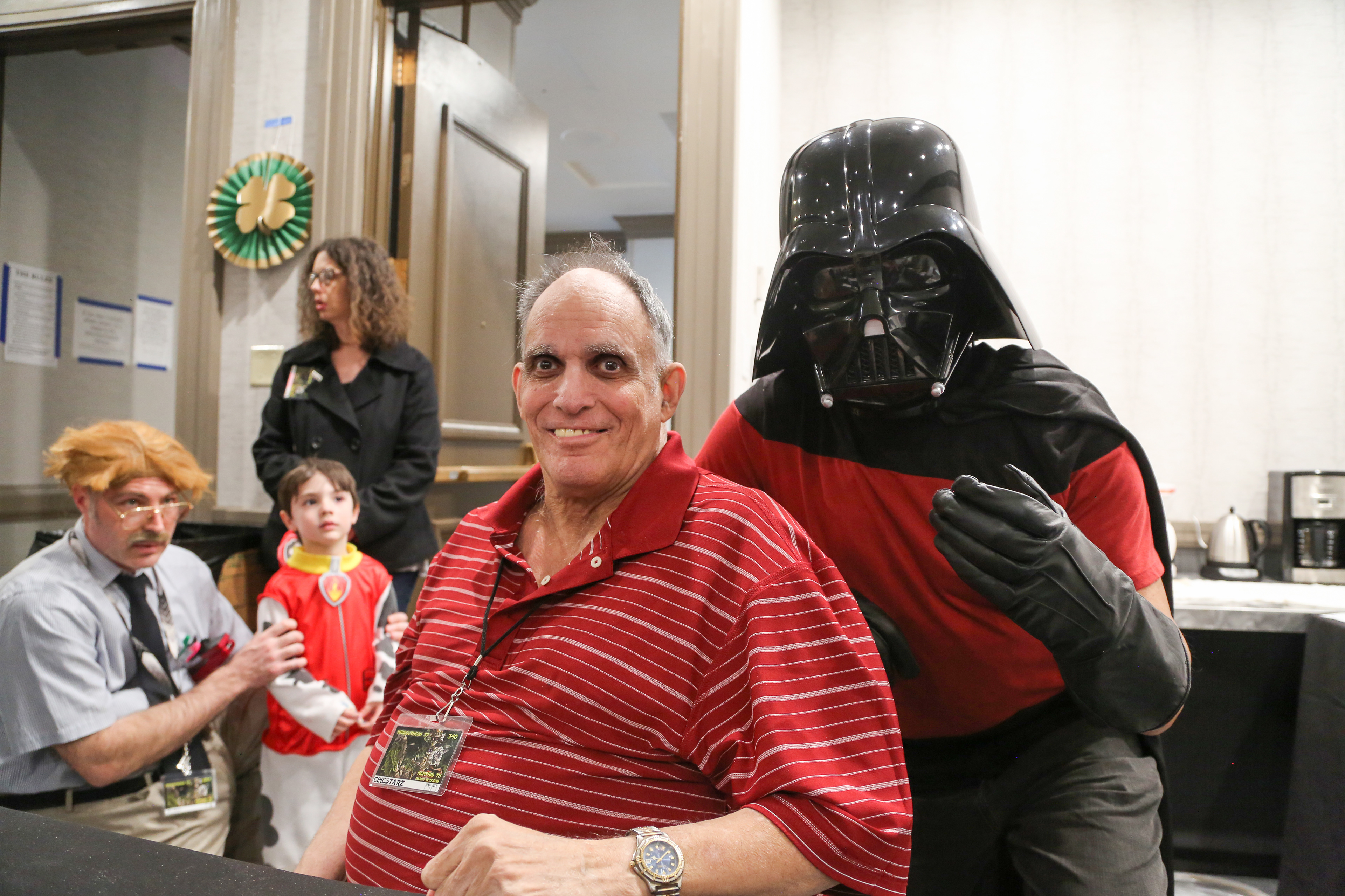 “Is it too loud?” I asked as I held my laptop up above him. Barton said nothing but smiled. He smiled again when I showed him a photograph of him standing beside an R2D2 replica at the Midsouth Con from 2012. Another smile surfaced when I showed him pictures from his birthday party in 2018 at Track 61. He smiled seeing Ron particularly.