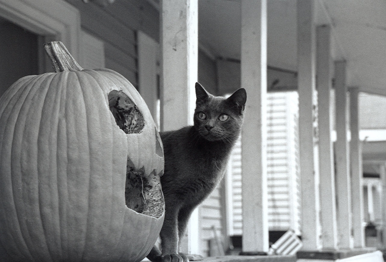 Black Cat and Jack-o’-Lantern in Saratoga Springs, New York