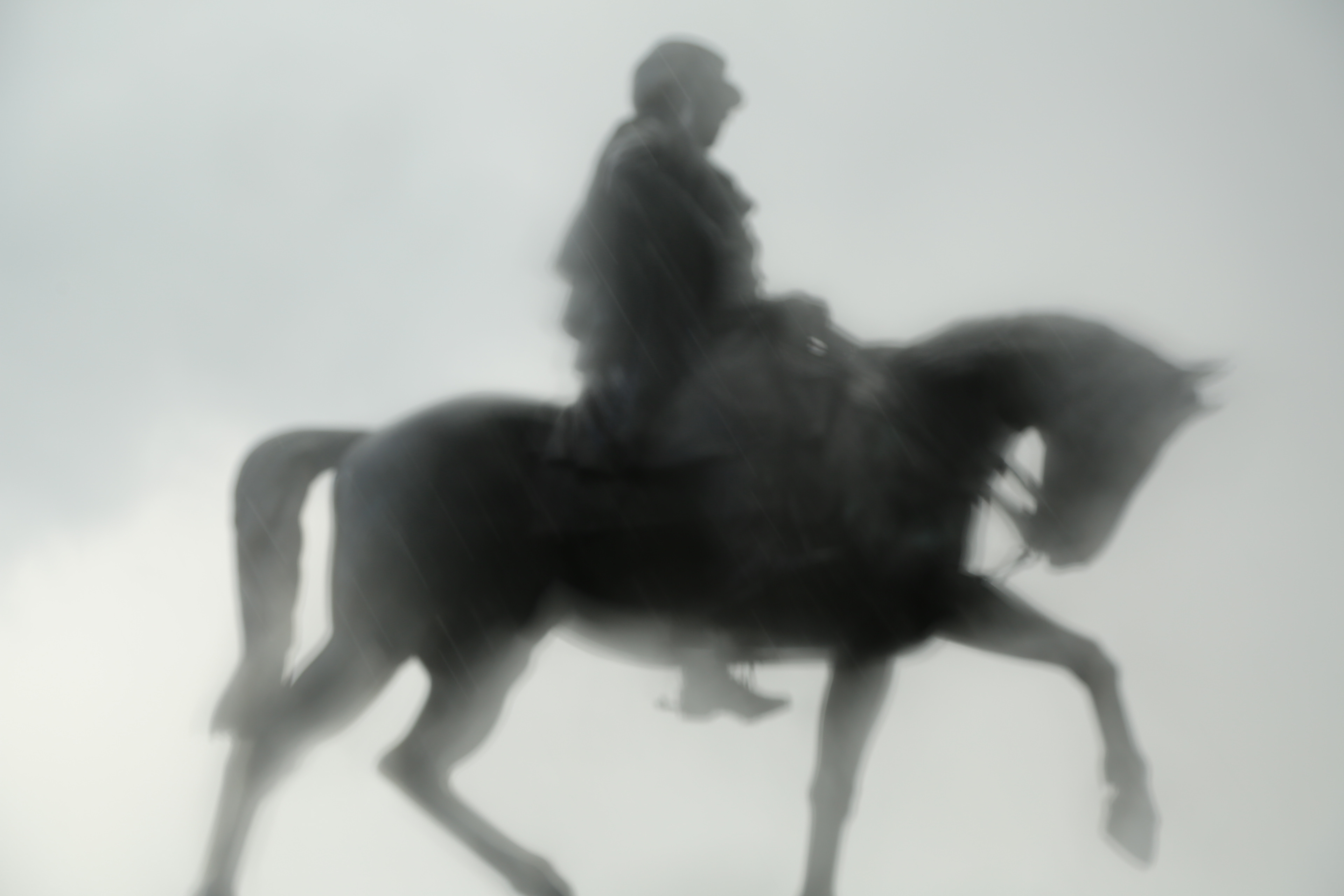 Statue of General P.G.T. Beauregard through a rainy car window